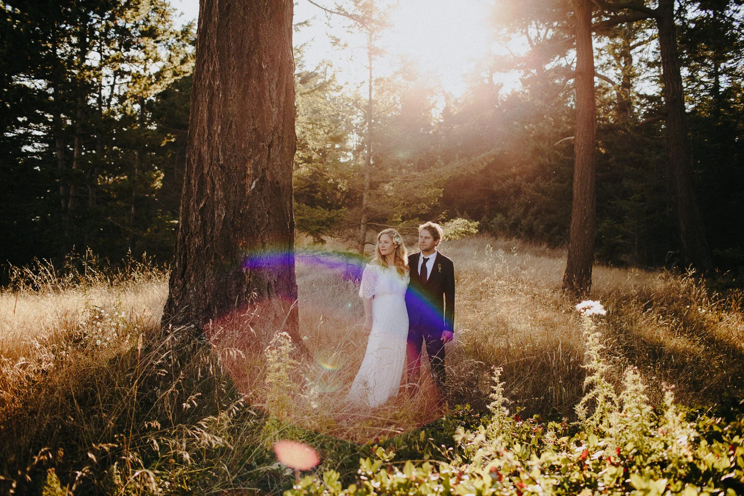 Lydia & Michael’s wedding on Pender Island is easily one of my favourites I’ve ever been a part of. Their ceremony officiated by Penny Allport was beautiful, marked by the ringing of a meditation bell, the passing of the rings through the hands of all the guests present and then capped off by the bride and groom entering the church alone together to ring the church bell. It was deeply moving, unique and a perfect representation of these two kind and warm people. After the ceremony the three of us went for a walk through Brooks Point Regional Park to take some portraits and Lydia asked me if I thought I would ever get married. I said after witnessing your ceremony, ya I think I would. It was the type of wedding that really makes you believe in love.